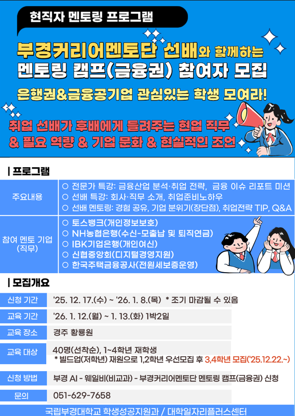 [홍보] '부경커리어멘토단 멘토링 캠프(금융권)' 프로그램 신청 안내