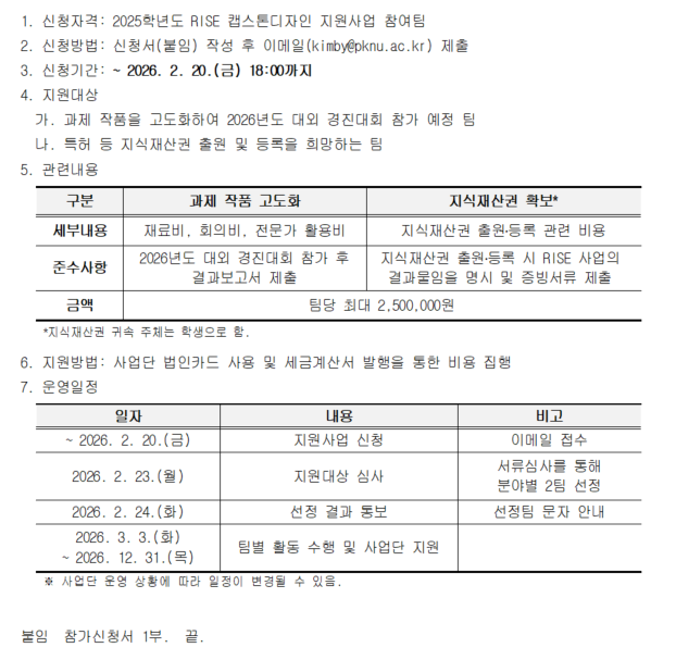 2026년도 캡스톤디자인 성과확산 지원사업 운영 계획 안내 및 신청 안내