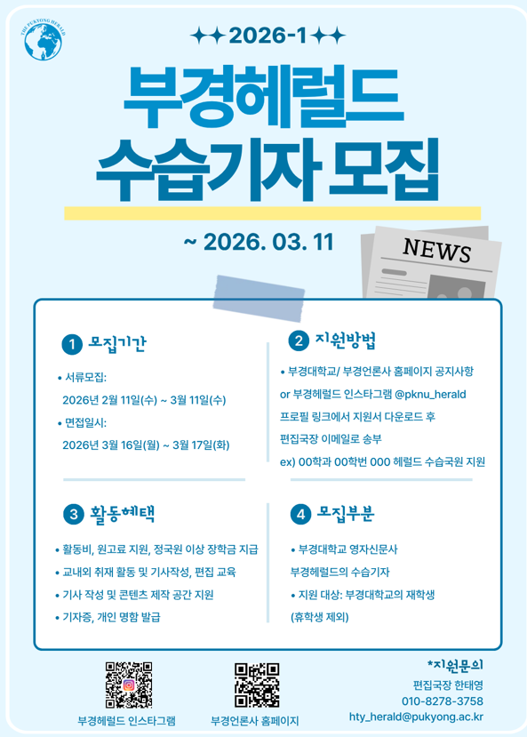 [홍보] 2026학년도 1학기 부경대신문(헤럴드) 수습기자 모집 안내
