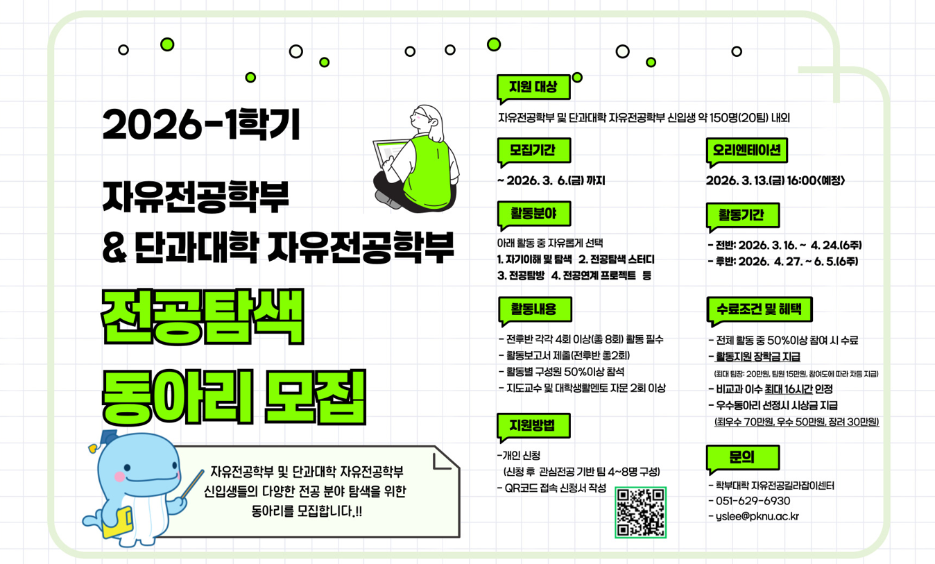 [홍보] 2026-1학기 자유전공학부&단과대학 자유전공학부 전공탐색 동아리 모집