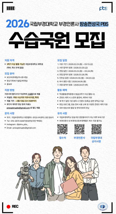 [홍보] 2026학년도 부경대방송국(PBS) 수급국원 모집 안내