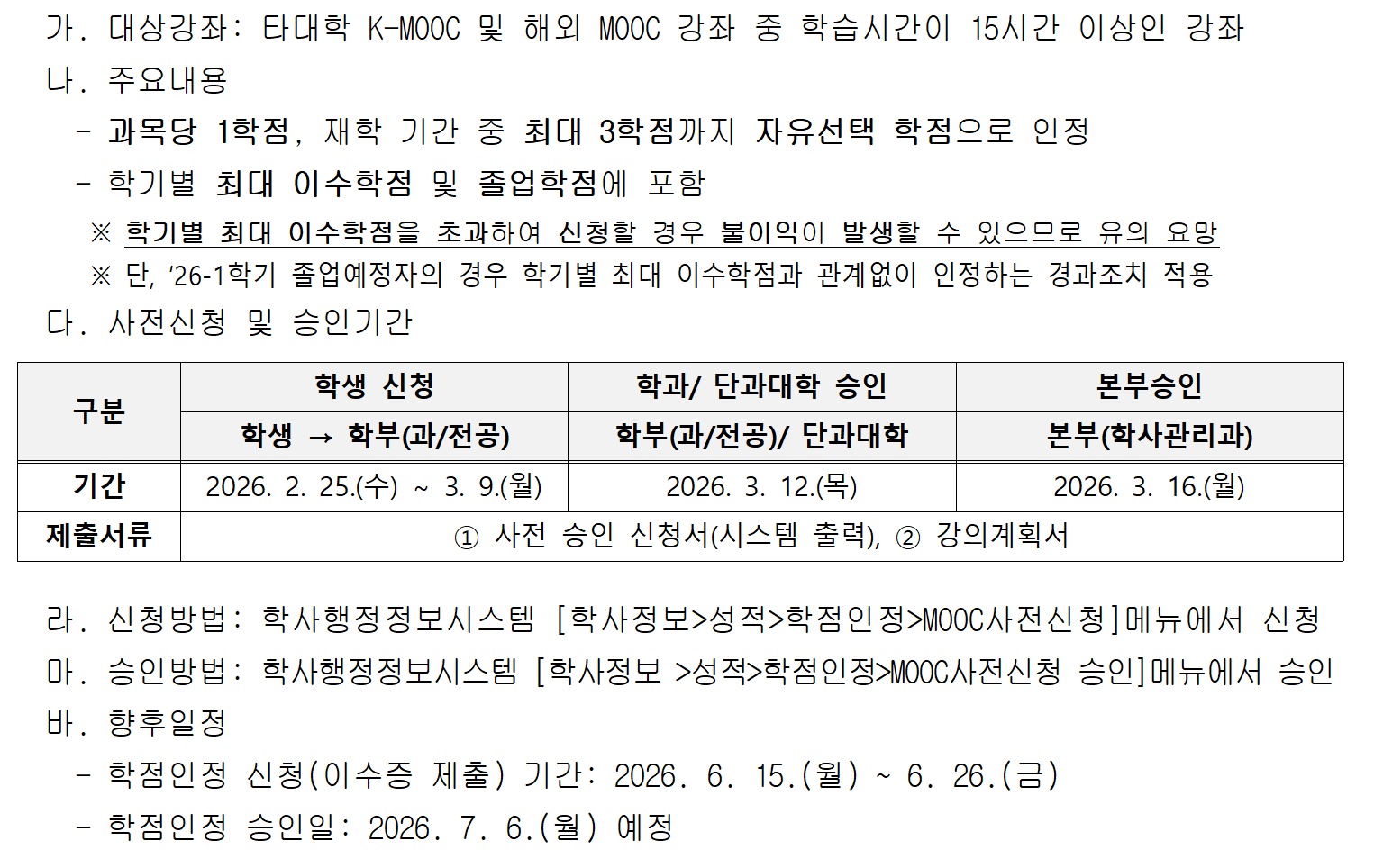 | 2026-1학기 온라인 공개강좌 학점인정 사전 승인 신청 안내 | |||